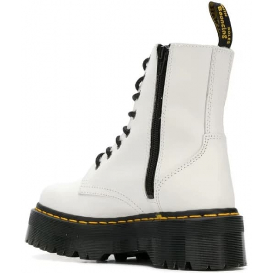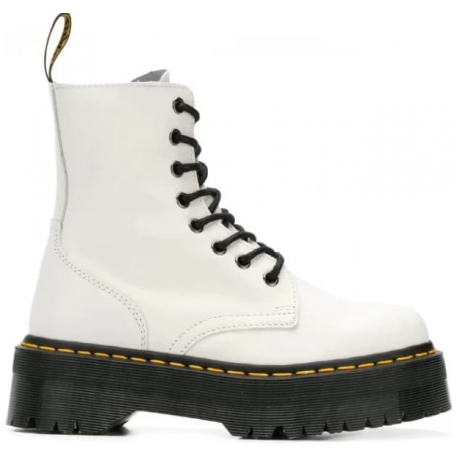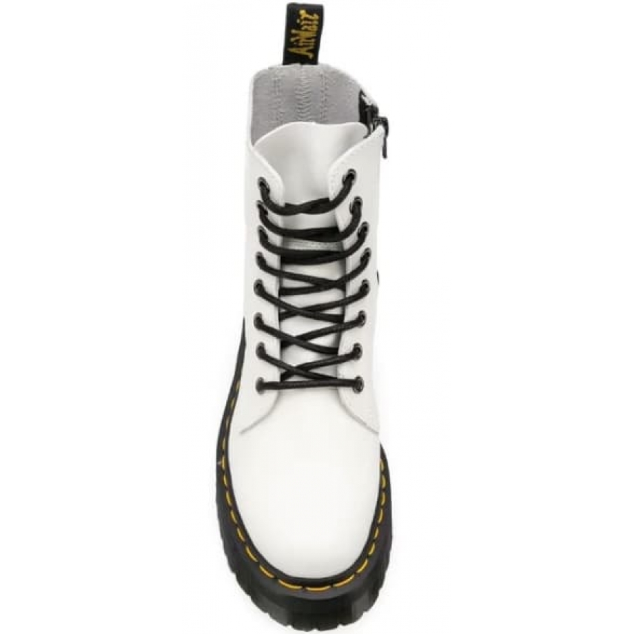 Ботинки DR.MARTENS Jadon White имеют очень яркий и оригинальный внешний вид. Модель в белом цвете всегда поможет вам выделиться на фоне остальных и подчеркнуть свой неповторимый вкус. Ботинки способны создать комфорт во время ходьбы, так как подошва имеет специальную прослойку AirWair. Рифленая поверхность подошвы легко предупреждает скольжение.